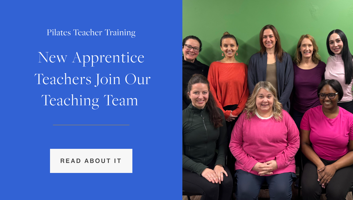 Six new Pilates Apprentice Teachers have joined our studio this month as they begin working under the guidance of Pilates Master Teacher Trainers Holly Holland, Teresa Willis, and Jodey Lowber.